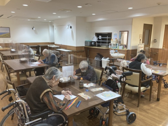 塗り絵教室の風景です。 オンライン以外にも、ご要望に応じて実施しております。