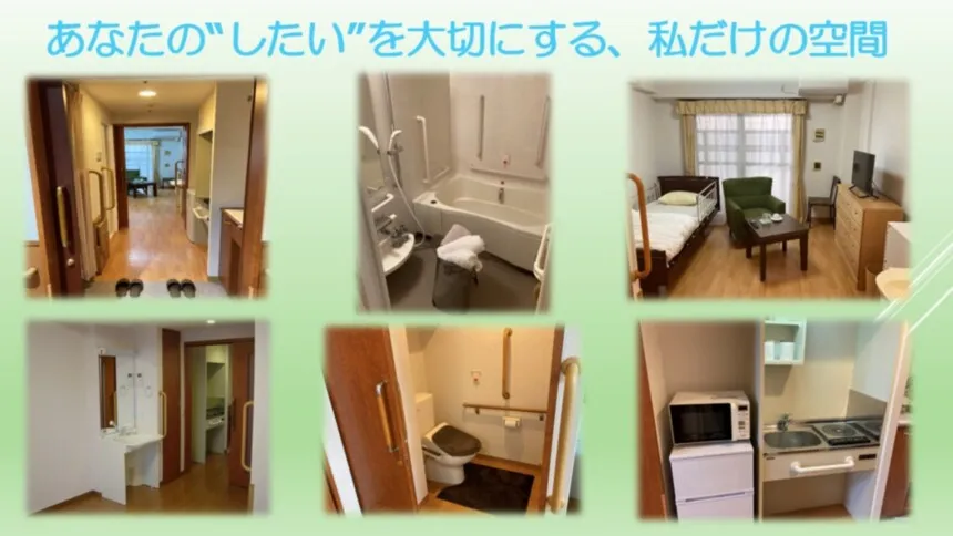 | 居室設備 | 洗面、水洗トイレ、ナースコール、収納、下駄箱、浴室、ミニキッチン、洗濯機スペース、固定電話設置可能 |