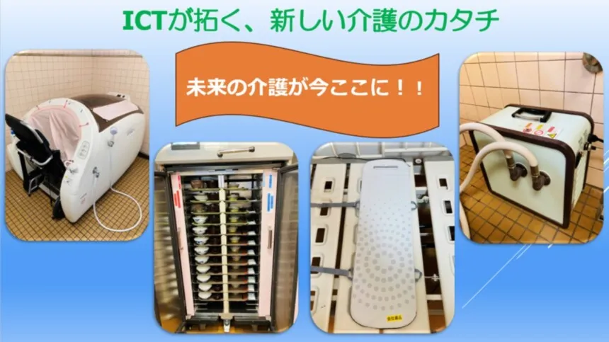 介護人材の需給ギャップを見据えて、来るべき未来を変えていくためにはICTの活用が不可欠です。 そんぽの家加島駅前で導入されているICTの一部を紹介します。 ・睡眠センサー(眠りの状態に合わせたケアができます) ・アラエル(寝たきりのかたや、座位保持が難しい方も、入浴を楽しんで頂けます) ・再加熱カート(温かいもの、冷たいものを適温で保温、常に美味しい食事が楽しめます) ・ピュアット(ウルトラファインバブルで入浴される方の肌への負担を大幅に軽減します) テクノロジーの活用と、人にしかできない心の通うケアを提供します。