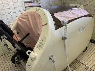 そんぽの家 伊丹荒牧では、安全・安心・快適に入浴していただくため「アラエル」を導入しています。アラエルの一番の魅力はその名の通り『洗える力』が優れていることです。 合計22ケ基のシャワーノズルが配置されており、ウルトラファィンバブルでしっかり綺麗に洗えます。入浴後も温かさが持続します。