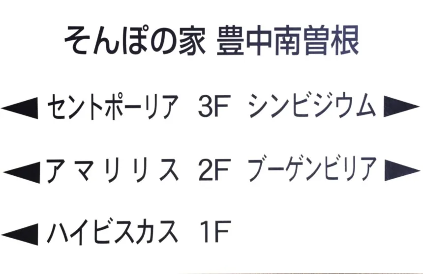 豊中南曽根は有料老人ホームとグループホームの併設施設です。 【介護付きホーム】ハイビスカス・アマリリス・セントポーリア要支援1~要介護5の方のご住居が可能です。また日中は看護スタッフが在中しているので医療行為(胃ろう・インスリン・褥瘡処置など)が対応可能です。 【グループホーム】ブーゲンビリア・シンビジウム要支援2~介護度5の方 ご入居可能認知症のことでお困りになっても、同じ建物に介護付きホームとグループホームが併設されているため相談しやすい環境になっています。花の名を由来とし、華やかで彩りある人生のお手伝いができればと思います。