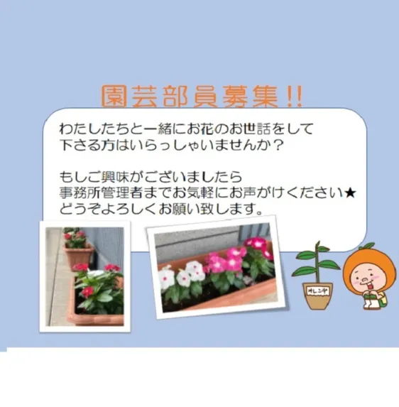 今まで行っていた活動や趣味などを、引き続き楽しんでいただくことができます。 灘大石では園芸部員を大募集中です。 一緒にお花を育てませんか?