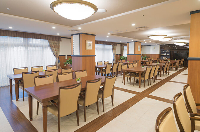 | 共用設備 | エントランスロビー、ラウンジ、ダイニング(食堂) 兼 機能訓練コーナー、ファミリーダイニング、カフェ、浴室(個浴・特殊浴)、理美容室、健康管理室、相談室、洗濯室、トイレ、浴室・トイレに呼び出しボタン、モニターカメラ、エレベーター内に非常電話・遠隔監視装置 他 |