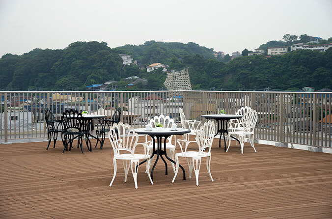 開放的な屋上テラスから眺める横須賀の風景