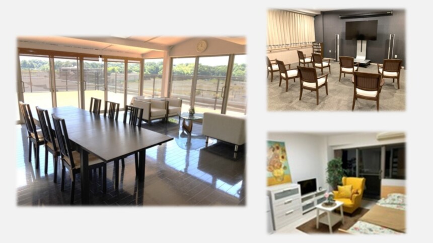 当ホームではご入居者さま、ご家族さまがご自由に使用いただける共有スペースとして5階サンルームをご用意させていただいております。 晴れた日には燦燦と降り注ぐ陽光のもとセラスで出ていただくことも可能です。 1階にシアタールームを完備しており、好きな映画やスポーツ観戦にご利用いただいております。 居室は優雅な「15畳」【完全プライベートルーム】好きな家具をお持ち込みいただきお過ごしいただけます。