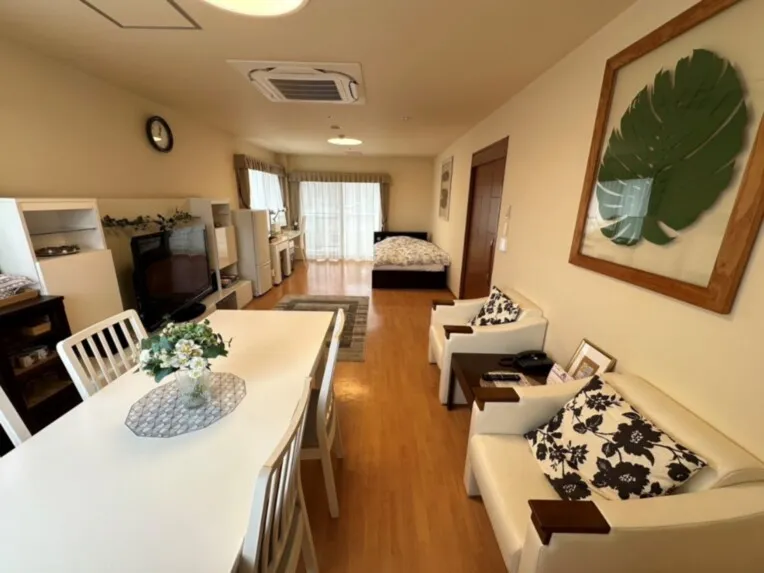 | 居室設備 | 個室:介護ベッド、洗面台、収納、トイレ、エアコン、照明、カーテン、TV端子、電話ジャック |
