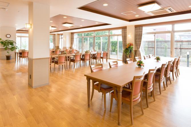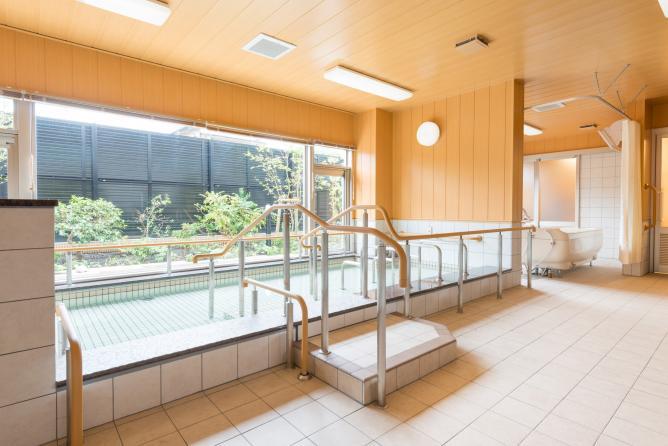 | 共用設備 | エントランスロビー、ダイニング(食堂)兼機能訓練コーナー、浴室(個浴・大浴場・特殊浴)、理美容室、健康管理室、相談室、トイレ、浴室・トイレに呼び出しボタン、モニターカメラ、エレベーター内に非常電話・遠隔監視装置 他 |