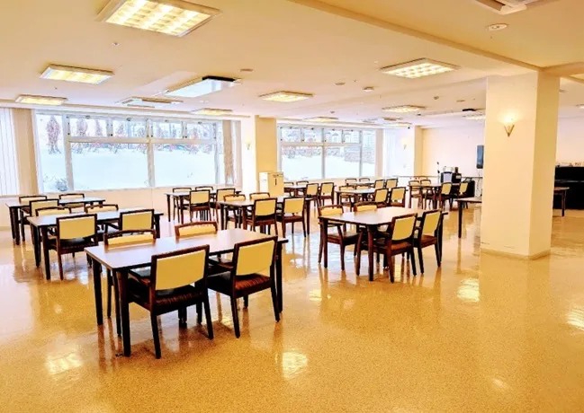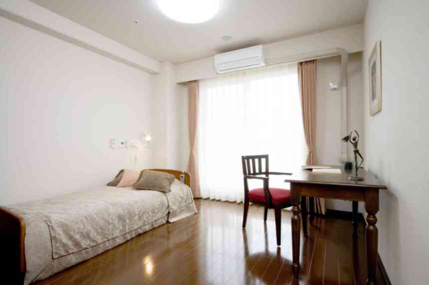 | 居室設備 | フローリング(クッションラバー付き)、車いす対応洗面台、電気式温水器、トイレ(温水洗浄付、暖房・脱臭便座機能付)、洗面・トイレ照明(人感センサー付)、手すり(トイレ)、クローゼット、ウォークインクローゼット(二人部屋)、床暖房(電気式)、電動式介護ベッド、寝具、居室照明(リモコン付)、ケア・ナースコール、冷暖房エアコン、スプリンクラー、非常放送設備、防炎カーテン、カーテンレール |