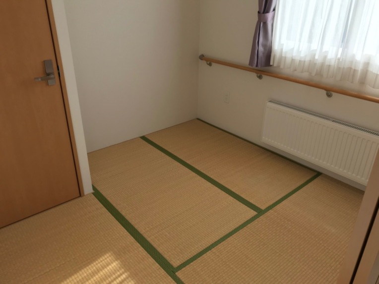 通常の居室はフローリング調の床となっていますが、畳張りの和室もございます。 なんとなくベッドが合わない方、布団のほうが馴染みがある方には和室のご利用を検討させていただく事もあります。(※使用の際は要相談)