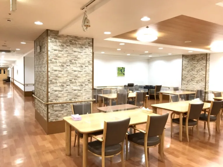 2022年4月、食堂や玄関フロア、廊下などを改装し、内装をリニューアル致しました。 LED照明を採用し落ち着いた雰囲気の壁紙に、入居者様からは大変ご好評を頂いております。 気持ちも新たに、照明・雰囲気ともに明るくなった館内をぜひご覧ください。