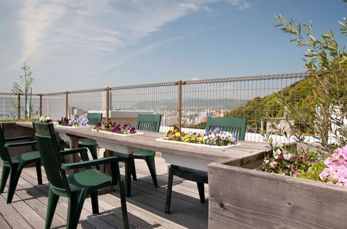 双葉山の中腹に位置しているホームです。 山の上から広島市内を一望でき、景観を楽しめる素敵なホームでとなっております。 屋上からは、広島駅、黄金山、広島城、そしてマツダスタジアムがご覧いただけます。 屋上で定期的に外気浴をしたり、涼しい時にはお茶会を開催して優雅なひと時をお過ごしいただけます。