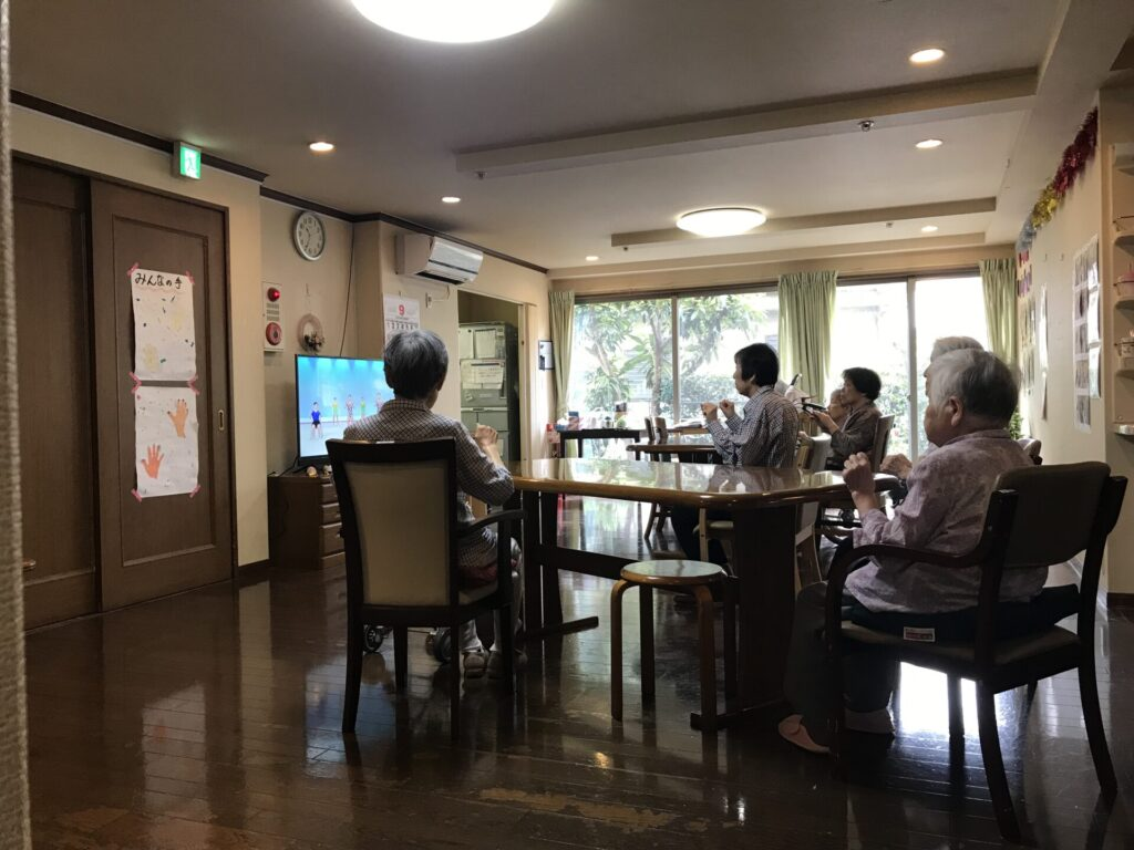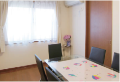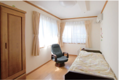 9名1ユニット、1階と2階合わせて2ユニットあります。居室の広さは約10平米。思い出の品や使い慣れたものを持参いただき過ごしていただきます。 日中は広いフロアーに集まって、体操やレクレーション、家事のお手伝いをしていただき、お客様同士や顔なじみの職員との会話を楽しみながら 暖かな雰囲気の中でお過ごしいただいております。