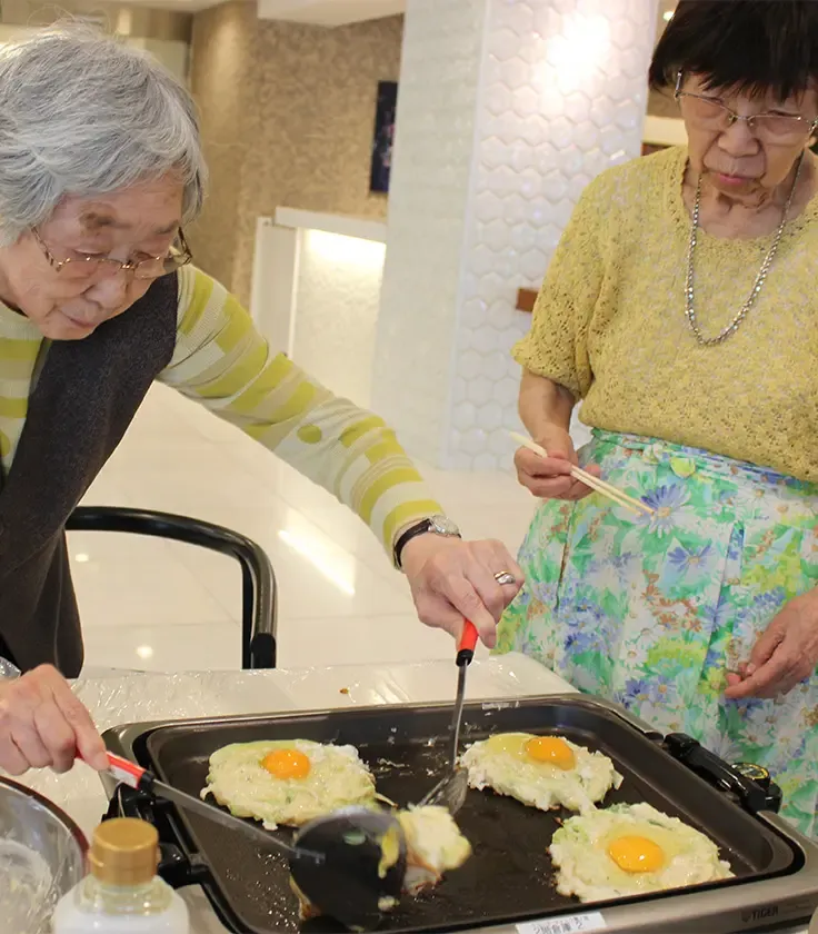 ご入居者一人ひとりの趣味や好みを反映し、個々人に寄り添ったアクティビティを積極的に実施しています。誕生日や記念日には思い出に残る特別なイベントを開催。ワークショップでは様々なテーマを用意し、ご入居者の自分らしい生活を支えるだけでなく、ご友人や趣味仲間との集いの場を提供。アクティブに楽しめてコミュニティ全体が活気づく、充実感と幸福感を味わえるような環境をご用意しています。