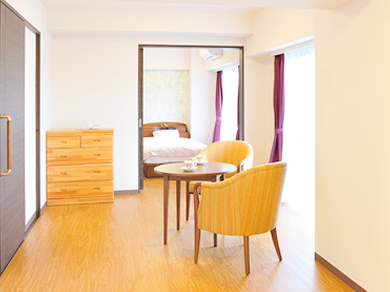 - ご入居者様の様子を、常駐しているスタッフが毎日確認いたします。安否確認方法はご本人、ご家族とのご相談により決めさせていただきます。 また、スタッフは24時間、365日常駐。緊急時は居室からケアコールを押していただくことで呼び出すことができます。