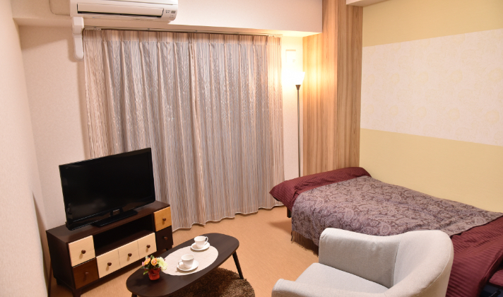 | 居室設備 | シャワー付トイレ、洗面台、ケアコール、介護用ベッド、エアコン、クローゼット、防炎カーテン |