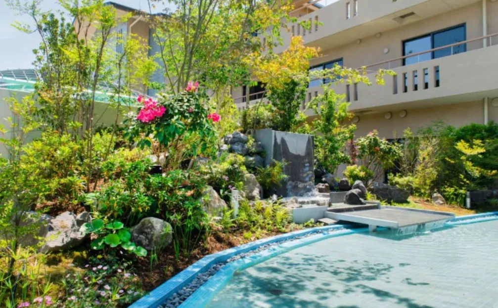 敷地内は花や緑で彩られ、水が流れ、風や光といった、自然の恵みを感じられるように設計されています。庭を散歩するとき、ロビーやレストランにいるとき、居室でくつろいでいるとき、いつも“五感に心地よさ”を感じられます。 居室はすべて個室でプライバシーを尊重し、ご自身の好きなものに囲まれて、快適に日々を過ごすことができます。
