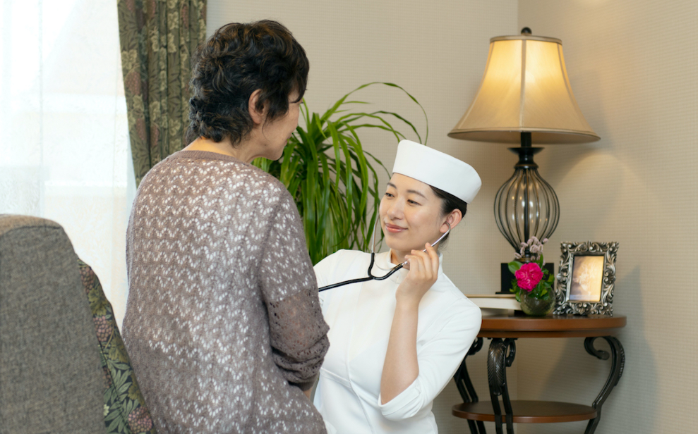 すべての居室にナースコールを設置し、緊急トラブルにも対応。近隣の医療機関と提携し、お一人おひとりの健康状態に合わせて心身両面をサポートいたします。また、人生100年時代に、美しく健やかな100歳を実現するためのプログラム「ヘルス&ナチュラルビューティ」を開発。スポーツ、フード、ビューティ、各分野のプロとプログラムを提供しています。