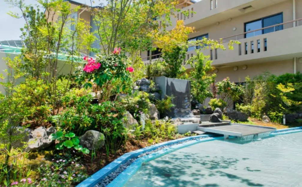 敷地内は花や緑で彩られ、水が流れ、風や光といった、自然の恵みを感じられるように設計されています。庭を散歩するとき、ロビーやレストランにいるとき、居室でくつろいでいるとき、いつも“五感に心地よさ”を感じられます。 居室はすべて個室でプライバシーを尊重し、ご自身の好きなものに囲まれて、快適に日々を過ごすことができます。