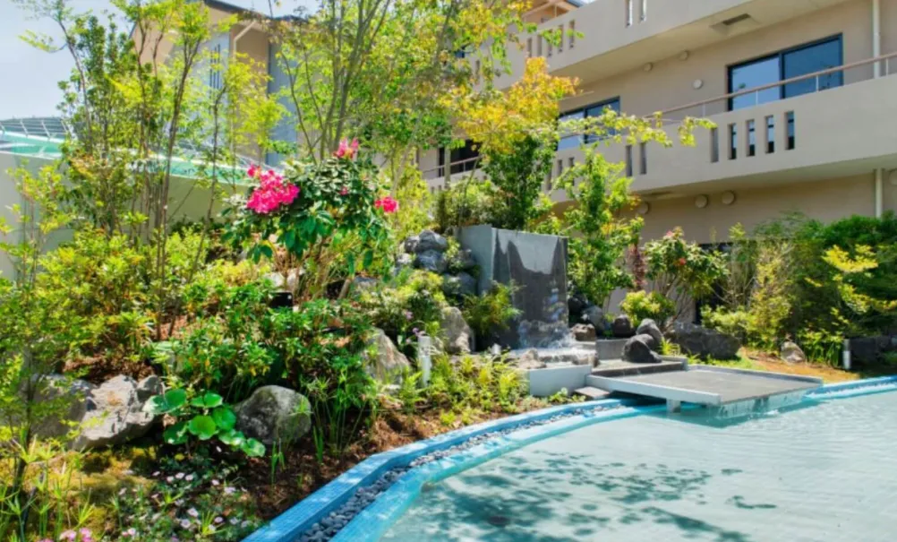 敷地内は花や緑で彩られ、水が流れ、風や光といった、自然の恵みを感じられるように設計されています。庭を散歩するとき、ロビーやレストランにいるとき、居室でくつろいでいるとき、いつも“五感に心地よさ”を感じられます。 居室はすべて個室でプライバシーを尊重し、ご自身の好きなものに囲まれて、快適に日々を過ごすことができます。