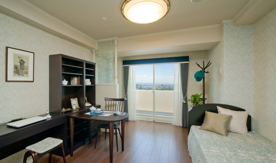 敷地内は花や緑で彩られ、水が流れ、風や光といった、自然の恵みを感じられるように設計されています。庭を散歩するとき、ロビーやレストランにいるとき、居室でくつろいでいるとき、いつも“五感に心地よさ”を感じられます。 居室はすべて個室でプライバシーを尊重し、ご自身の好きなものに囲まれて、快適に日々を過ごすことができます。