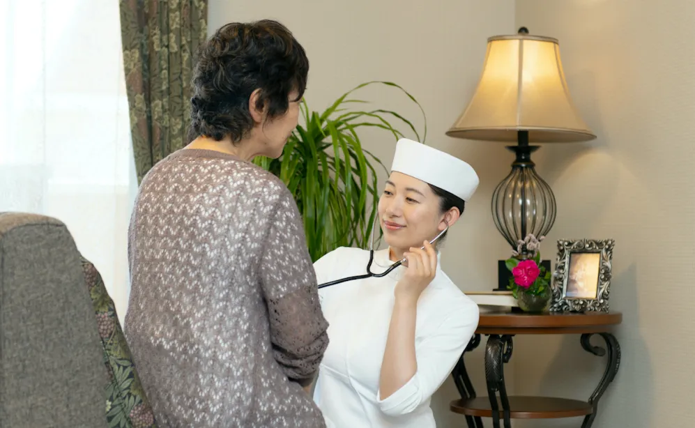 すべての居室にナースコールを設置し、緊急トラブルにも対応。近隣の医療機関と提携し、お一人おひとりの健康状態に合わせて心身両面をサポートいたします。また、人生100年時代に、美しく健やかな100歳を実現するためのプログラム「ヘルス&ナチュラルビューティ」を開発。スポーツ、フード、ビューティ、各分野のプロとプログラムを提供しています