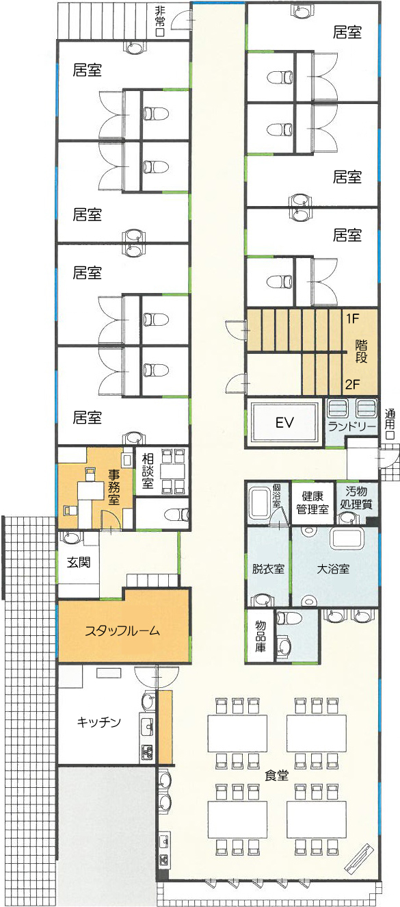 | 共用設備 | 個浴、ストレッチャー浴 |