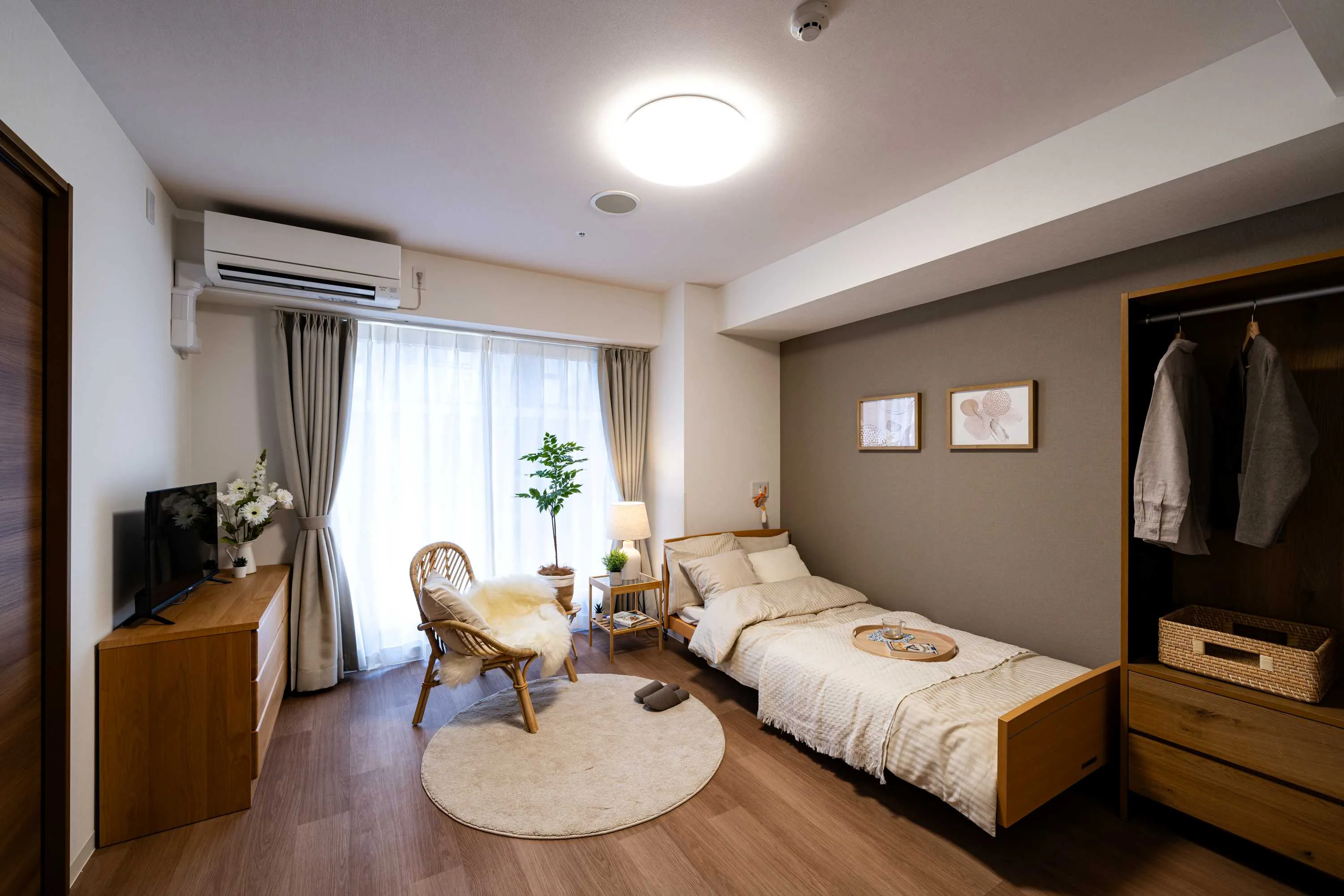 | 居室設備 | ナースコール、ベッド、テレビ、チェスト、エアコン、カーテン、照明機器、洗面台、トイレ、温水便座 |