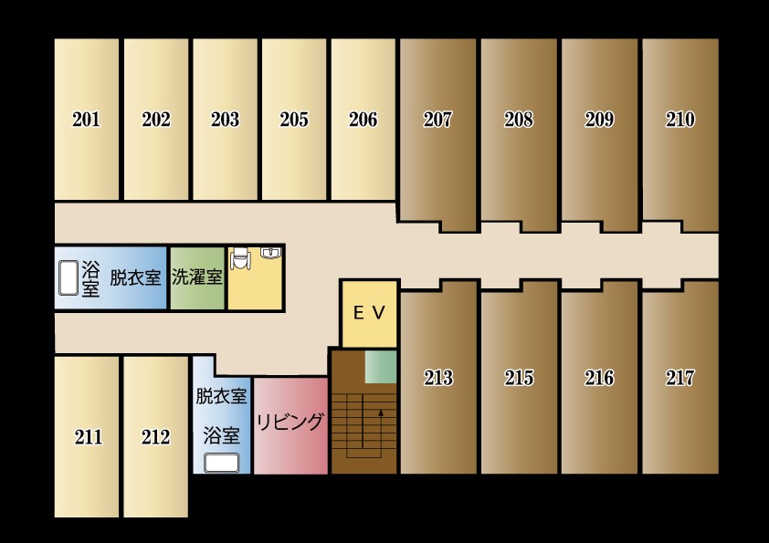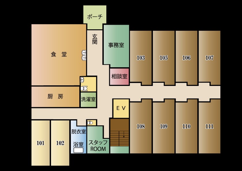 | 共用設備 | 食堂·リビング(談話コーナー)·浴室·洗濯室 |