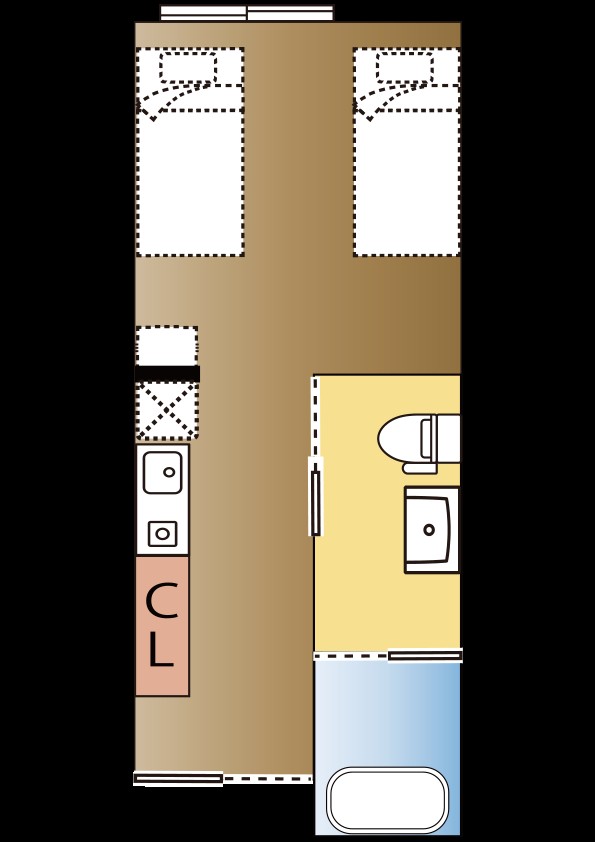 | 居室設備 | トイレ(ウォシュレット付)·洗面(温水)クローゼット·キッチン·カーテン完備エアコン・照明 |