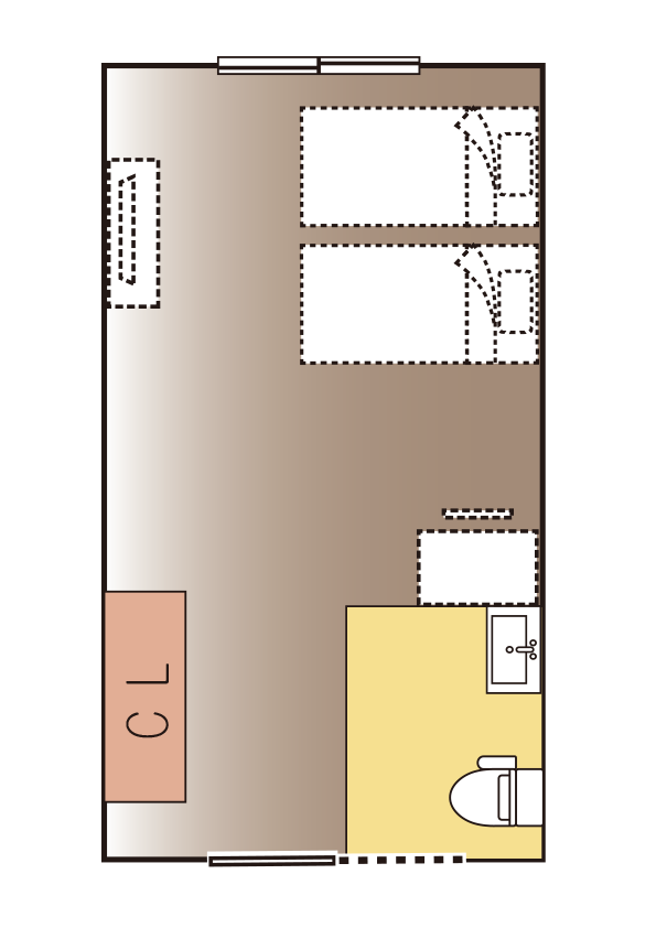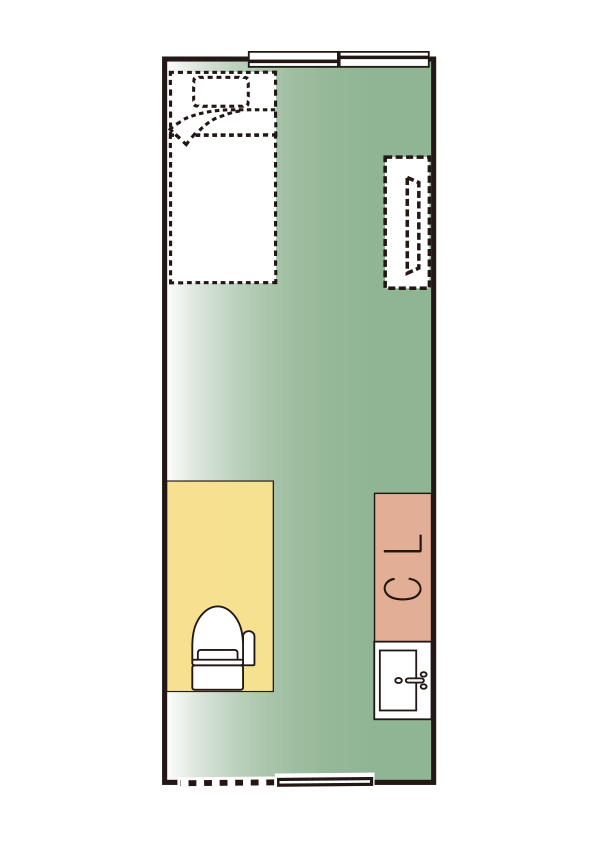 | 居室設備 | トイレ(ウォシュレット付き)·洗面(温水)クローゼット·カーテン完備·エアコン・照明 |