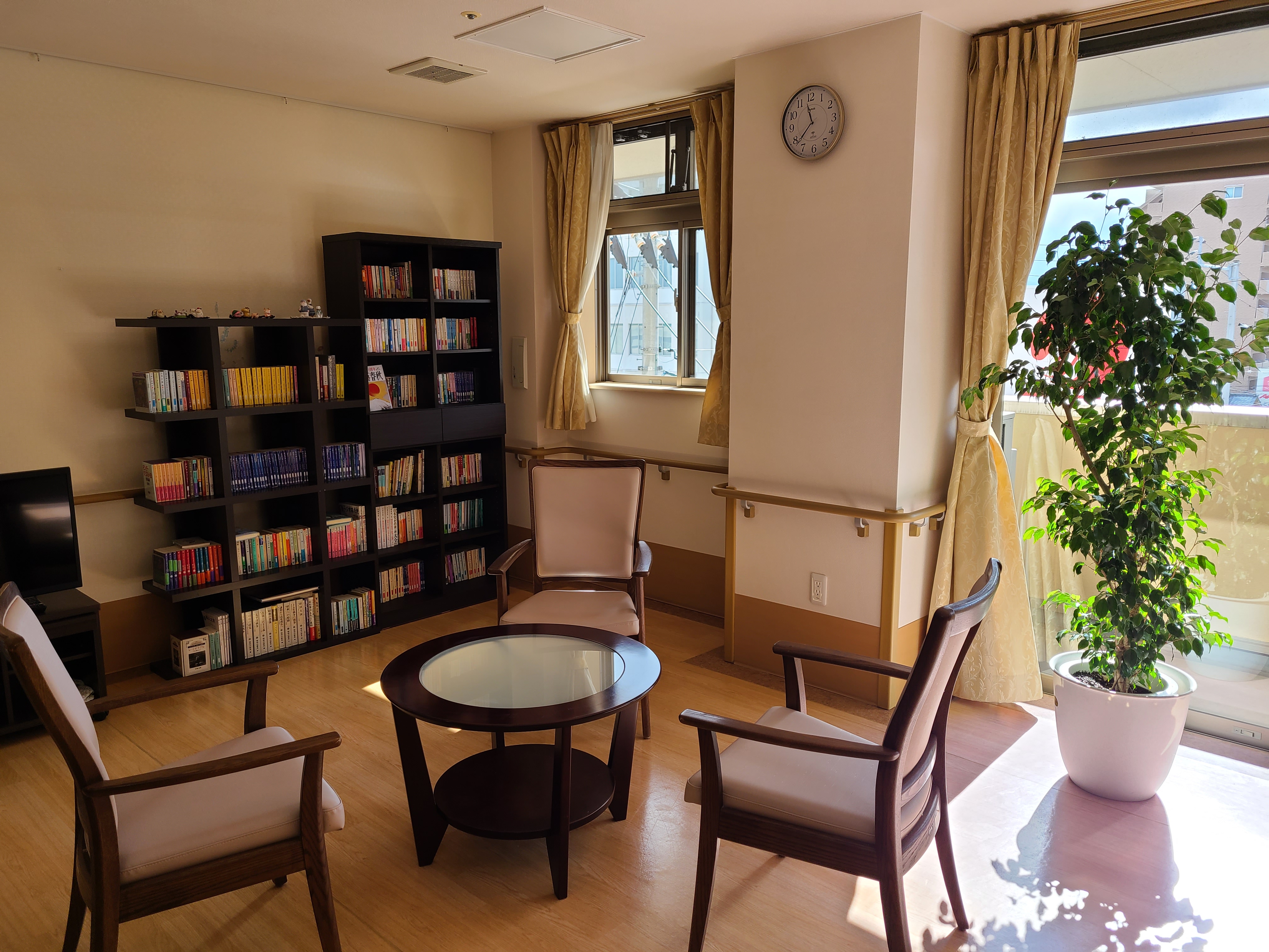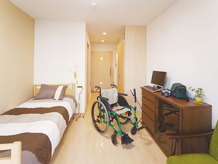 | 居室設備 | オゾン消臭装置、収納家具、冷暖房、天井照明 、電動リクライニング式ベッド、ウォシュレット付トイレ 、洗面台、応接セット、木製キャビネット、カーテン 、フットライト、コールボタン、スプリンクラー |