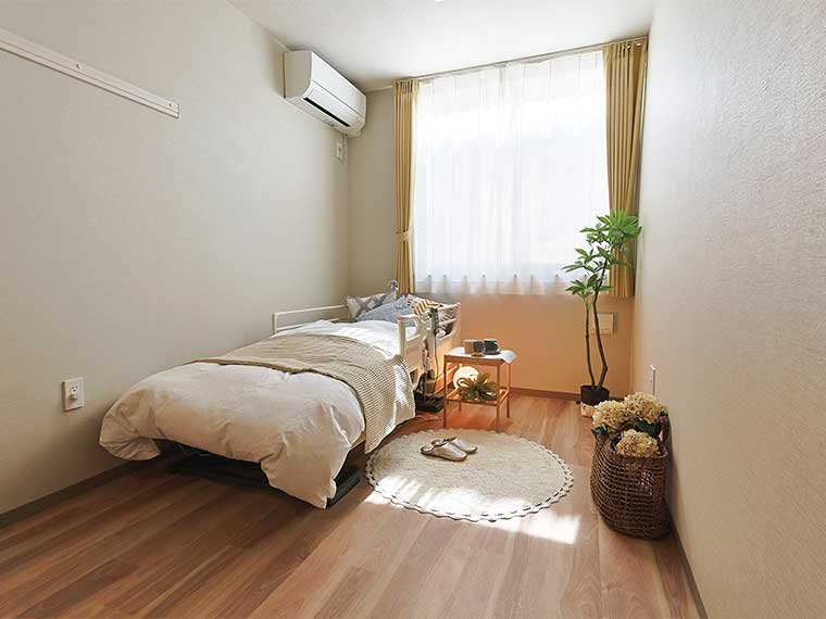 | 居室設備 | ● 冷暖房 ● 天井照明 ● 洗面台 ● カーテン ● 緊急通報ボタン ● スプリンクラー |