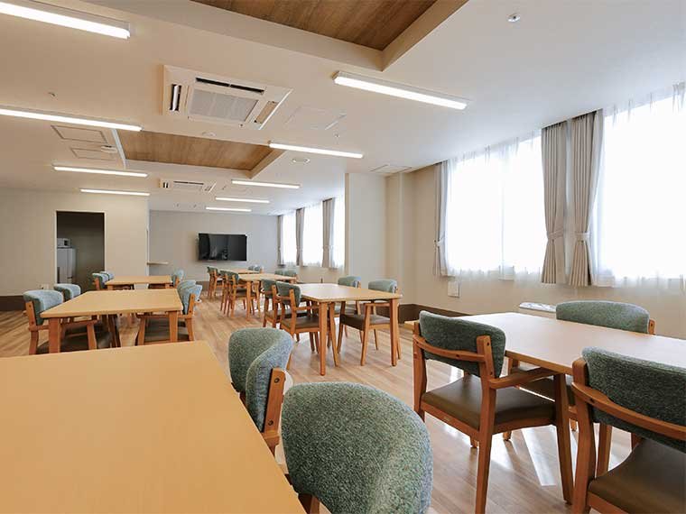 | 共用設備 | ● 浴室(一般浴槽・リフト浴槽) ● 温水洗浄便座付トイレ ● 冷暖房 ● Wi-Fi ● 相談室 ● 洗濯乾燥機 ● 食堂兼談話コーナー及び機能訓練コーナー ● エントランス ● EV ● スプリンクラー |