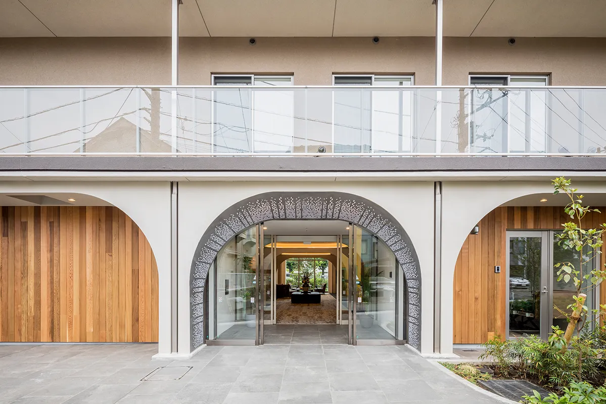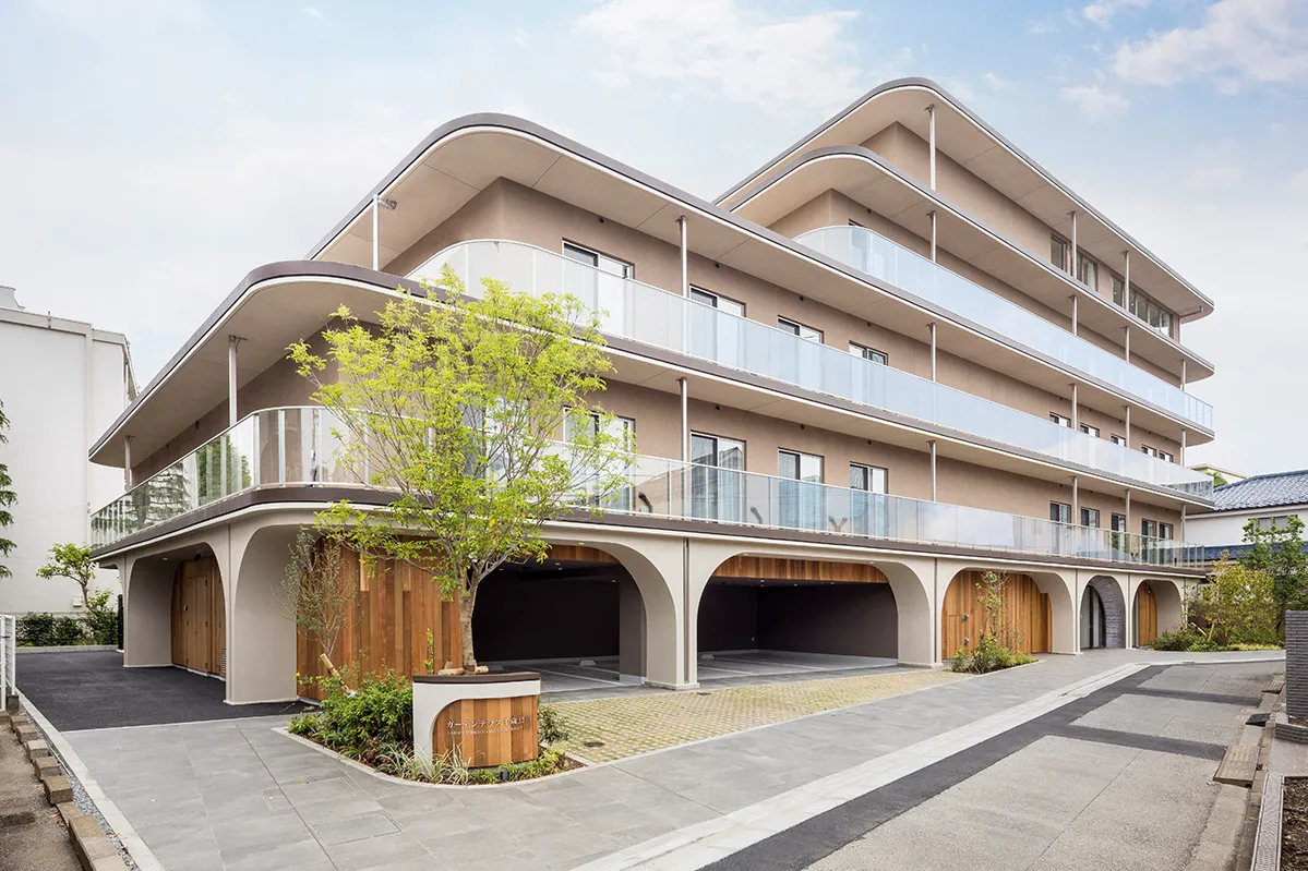 ~富士山を望む明るく優雅な邸宅~ 上品かつユニークで、至る所に設えたアーチ形が柔らかく空間をつつみこむ、洗練された邸宅。白を基調としながら、木や石など自然を思わせる素材を組み合わせることによって、温かみのある優雅な印象に仕上げました。 駅前の商店街には新旧様々なお店が軒を連ね、暮らしやすい環境にあるガーデンテラス千歳烏山。甲州街道や環状八号線がすぐそばでアクセスの良い立地にありながら、周辺は閑静な住宅街です。 そんな都心の近くに位置しつつ、眺望の良さも特徴です。最上階からは、さえぎることのない見事な富士山を望むことができます。 24時間経験豊かなスタッフが常駐し、多彩なサービスを提供いたします。地域の総合病院と連携し、訪問介護、デイサービス、医療サポートなどご入居者さまの安心を支えています。 日々の生活では、美味しいお食事と楽しさ溢れるレクリエーションやイベントをご用意。 都心の利便性を享受しながら、緑ある明るい空間で安らかな毎日を送ることができる施設、それがガーデンテラス千歳烏山です。