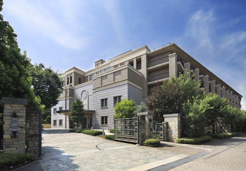 のびやかな空と清々しい緑が広がる穏やかな邸宅地。 隣接する木々に寄り添うような建物と、どのお部屋からも光・風・緑を感じられるようなしつらえとなっています。随所に金箔のアクセントをちりばめ、重厚感の中に日本の美を感じられる華やかで優美な館内です。