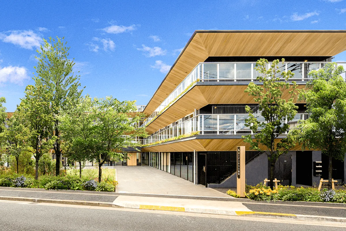 都市の利便性を享受しながらも、芳しい自然に恵まれた地でその薫陶を受けて誕生した邸宅。当施設は、保育園とクリニックが併設された複合施設です。庭を囲むように配置された悠然と構える外観。ゆったりと流れる時間の中で歓び溢れる日々をお過ごしください。