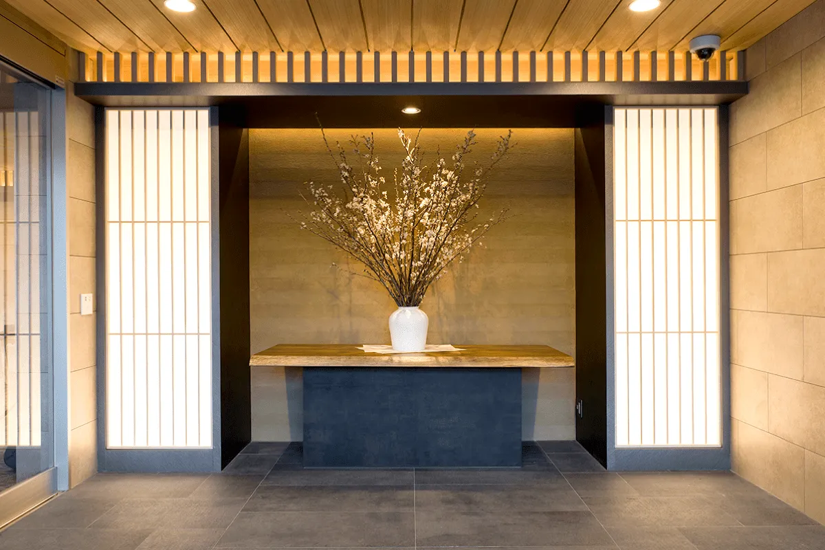 「和ごころ」をコンセプトに随所に日本らしい情緒を感じられるデザインを追求。館内には、エレガントで明るいお部屋をご用意。優雅さや気品に満ちた「ホテルライク」なホームであるために、屋内を彩るオブジェや設えの一つ一つまでを厳選しています。