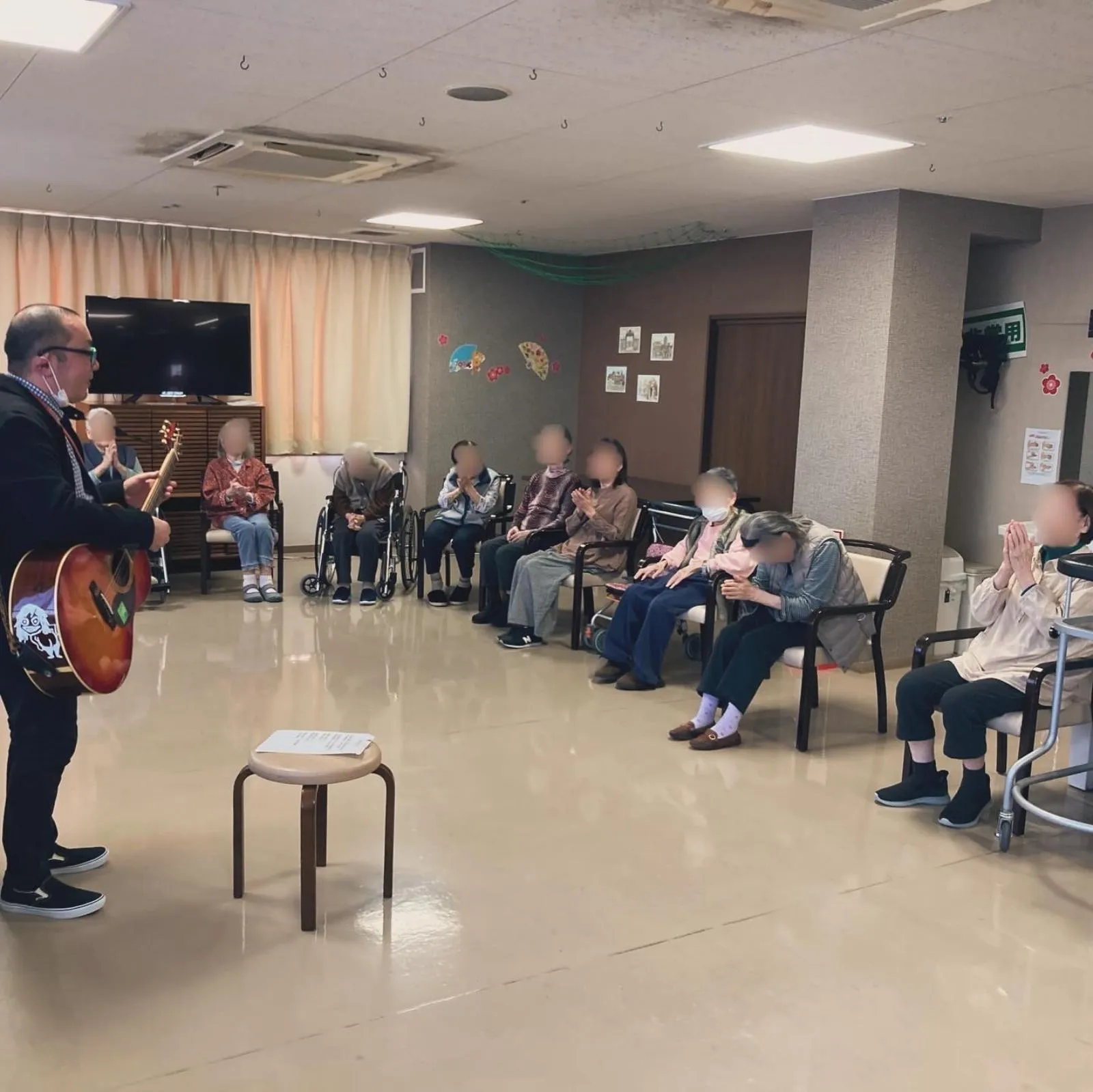 施設長がギターを生演奏!とても人気のレクで大盛り上がりです!