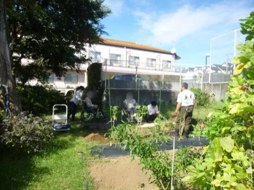 施設裏手には専用の畑があり、季節の旬な野菜を栽培し、収穫しております! スロープも併設しているため、車椅子の方でも安心してお楽しみいただけます!