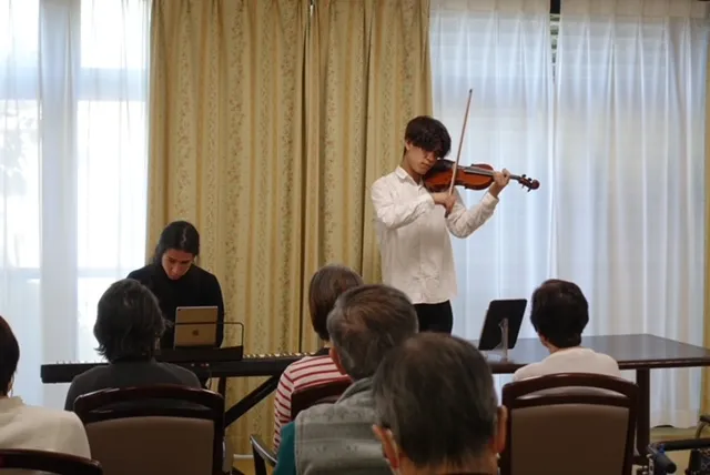 音楽のボランティア多数お越しくださっています。 生演奏です