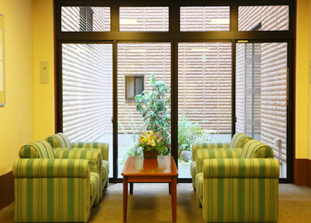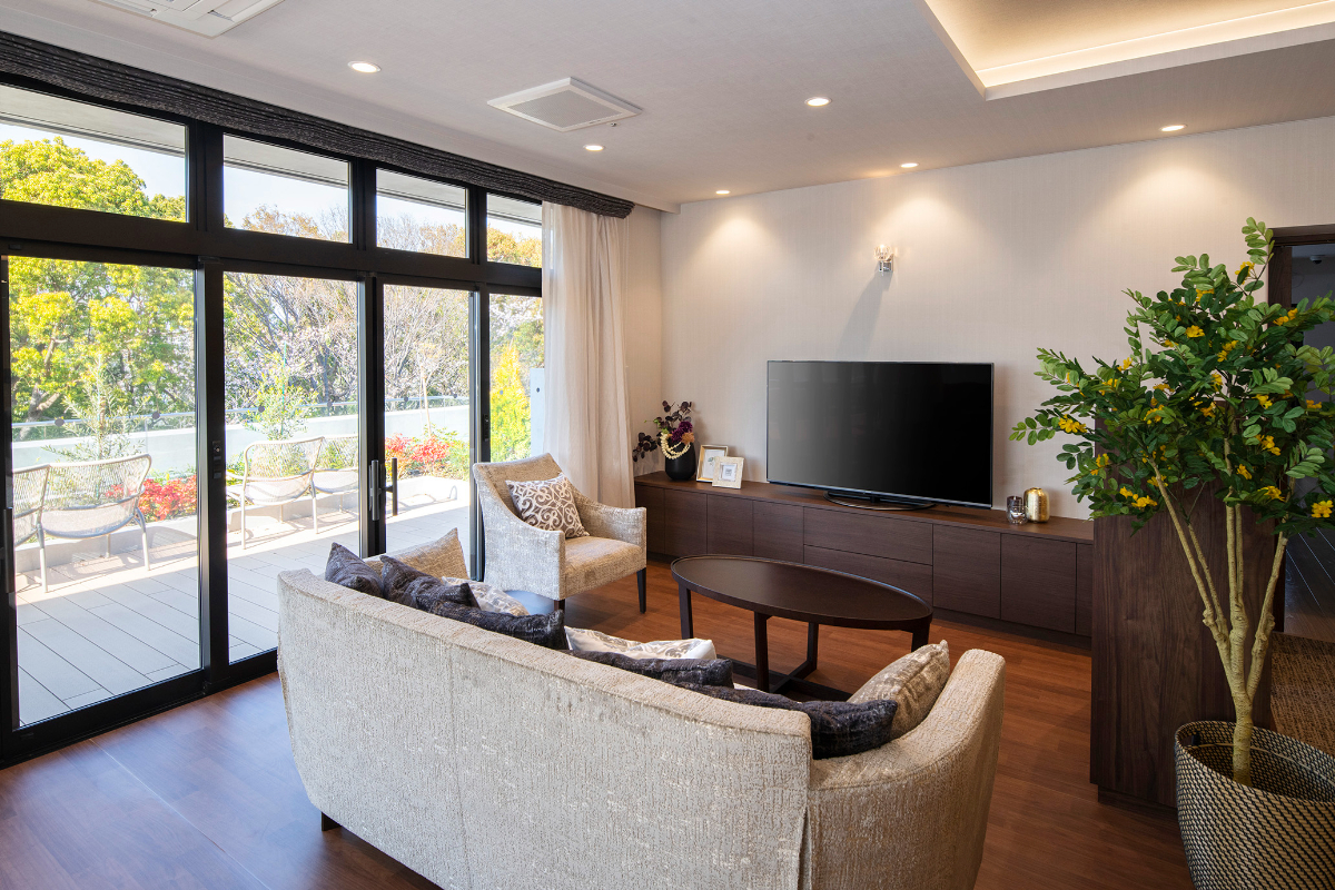 庭園やカフェなど、落ち着いた団欒空間が魅力的なホーム。リラックス…