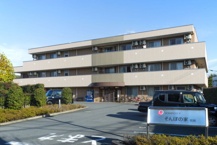 →約400m先のファミリーマート手前の交差点を左折→約250m先に『そんぽの家昭島』と書かれた電柱広告あり、左折→約50m先に電柱広告あり、左折→約100m進み左手がホーム
