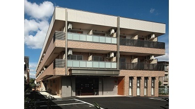 →黄色い建物の手前フェンスにそんぽの家S宝塚小林の看板が見える