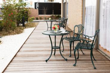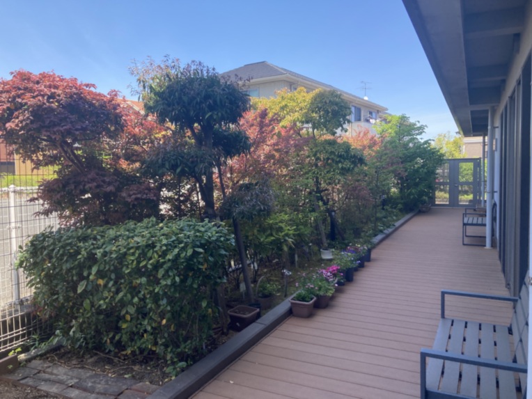 開放感あふれる中庭で、季節の花々に囲まれながら暮らす。
